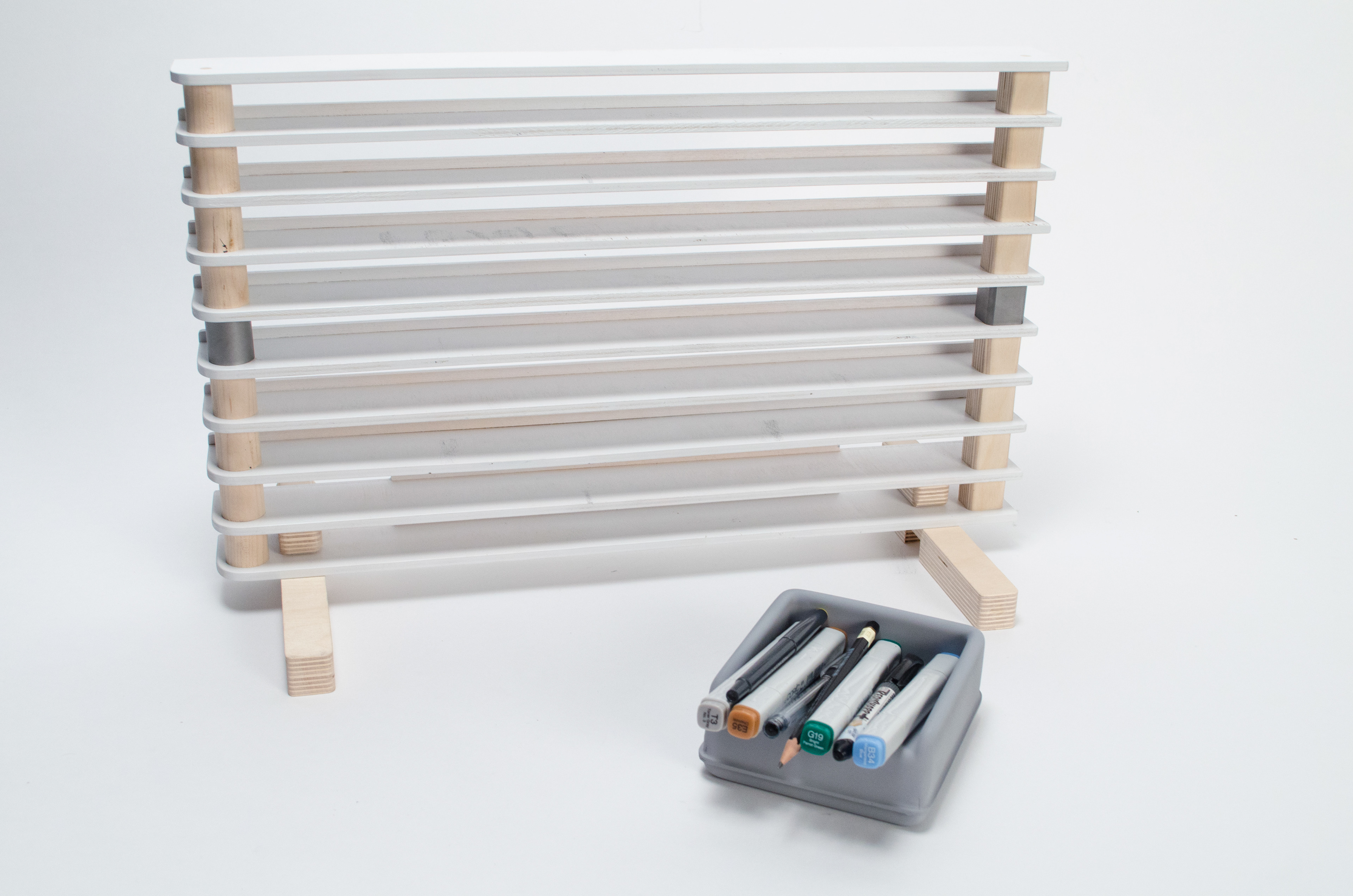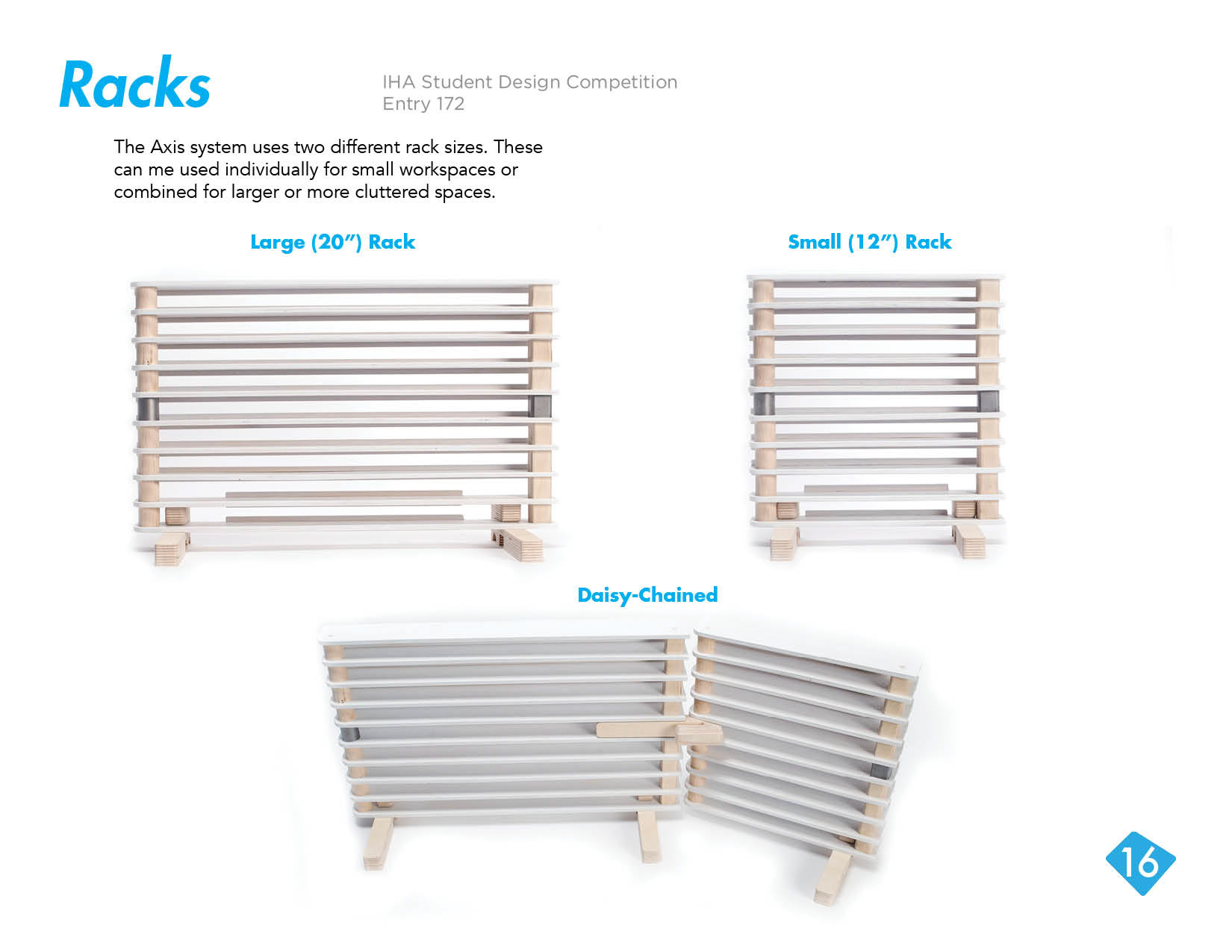 Axis is a modular, configurable desktop organizing system, based on the idea that people want their frequently-used desk tools to be visible, accessible, and organized. The details were fleshed out after a study of what constitutes desktop clutter and understanding the limitations of existing products.